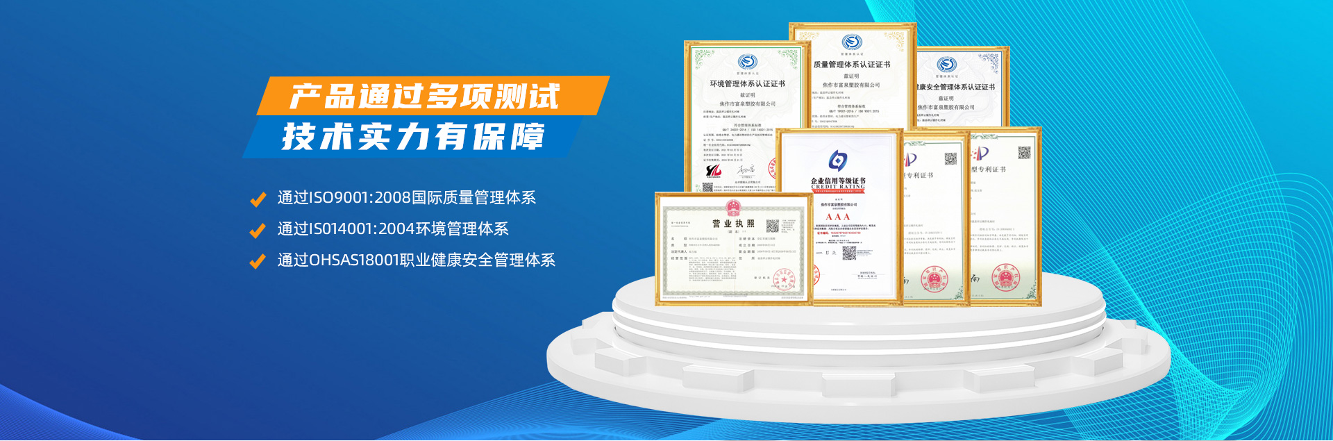 - 焦作市富泉塑膠有限公司,創(chuàng)立于1995年,是一家集研發(fā)、設計、生產(chǎn)、銷售為一體的大型管材企業(yè)。公司位于太極故里、黃河之濱一一河南焦作溫縣。公司占地128畝,現(xiàn)有職工210余人,其中具有中技術職稱的19人。生產(chǎn)、檢驗設備58臺(套),包括PVC實壁管生產(chǎn)線11套、PE實壁管生產(chǎn)線12套、HDPE雙壁波紋管生產(chǎn)線6套、PVC雙壁波紋管生產(chǎn)線5套,檢驗設備14臺(套)。主要產(chǎn)品有:Φ20mm-630mm、各種壓力規(guī)格的PVCU、PVC-M、PE給水管材,PVC-U節(jié)水灌溉管材,HDPE燃氣和礦用管材,DN200-800mm的HDPE、PVC雙壁波紋管及各種噴灌、滴灌工程材料。承接大中型市政供排水、飲水安全及節(jié)水灌溉等工程。 富泉塑膠公司重視產(chǎn)品的質(zhì)量、安全、環(huán)保和節(jié)能,在同行業(yè)中率先完成了“新華節(jié)水產(chǎn)品認證”,全方面通過ISO9001:2008國際質(zhì)量管理體系、IS014001:2004環(huán)境管理體系和OHSAS18001職業(yè)健康安全管理體系的一體化導入,并建立起規(guī)范的現(xiàn)代企業(yè)管理體系。公司以“質(zhì)量”為先導,采用質(zhì)量跟蹤、多環(huán)節(jié)把關的方法,組建具有行業(yè)水準的企業(yè)技術檢測中心,常年委托水利部節(jié)水灌溉設備檢測中心、河南省產(chǎn)品質(zhì)量監(jiān)督檢驗院對產(chǎn)品跟蹤檢測,并由中國人民保險公司承保產(chǎn)品質(zhì)量。公司連續(xù)多年被河南省水利廳確定為“安全飲水設備、節(jié)水灌溉設備”定點生產(chǎn)企業(yè),并獲得“中國名優(yōu)產(chǎn)品”“質(zhì)量、服務、信譽AAA企業(yè)”“河南省**產(chǎn)品”“河南省水利企業(yè)”“河南省守合同、重信用企業(yè)”等榮譽稱號。 富泉塑膠公司堅持“用戶為上”的服務理念,長期以來,全方面關注客戶價值,不斷提升服務水平。服務隊伍常年為客戶的產(chǎn)品設計、施工、安裝提供合理的方案和全程細致、周到、**、快捷的技術服務。公司自成立以來,一直堅持以人為本的宗旨,塑造企業(yè)形象,并致力于新產(chǎn)品的開發(fā),憑借雄厚的技術開發(fā)能力,先進的工藝制造流程,嚴格的質(zhì)量管理保證體系,優(yōu)良的售后服務網(wǎng)絡,已成為河南省大的飲水、灌溉及排水管材設備制造商。產(chǎn)品暢銷全國,而且還以公司雄厚的綜合實力在業(yè)界中占據(jù)著重要的地位。